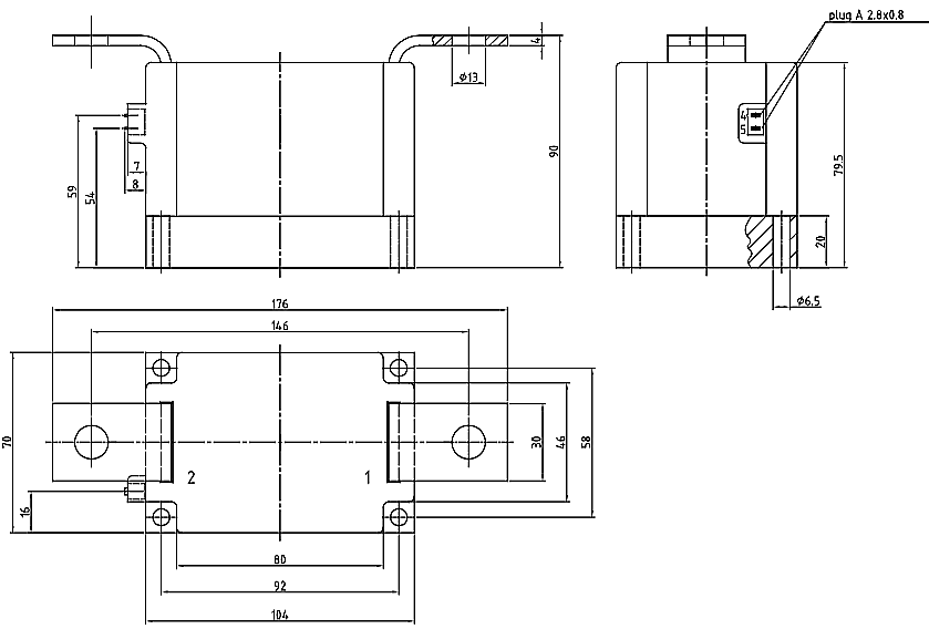 单晶闸管70mm电源块3000~3600V,530A模块,用于相位控制压力接触技术使用隔离的铜基板。